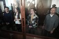 As they were led into the courtroom on Wednesday, a crowd of supporters greeted them with applause. In the courtroom, the four smiled at their loved ones from a glass defendant's cage.