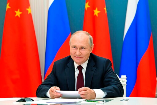 The new warplane hidden under tarpaulin was photographed being towed to a parking spot across an airfield in Zhukovsky, outside Moscow, where the MAKS-2021 International Aviation and Space Salon opens Tuesday. Russian President Vladimir Putin is set to visit the show's opening.