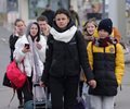 At the Sighetu Marmatiei crossing on Ukraine's border with Romania, women and children arrived by car, bicycle and on foot on Friday, clutching plastic bags and roll on suitcases as the snow fell.