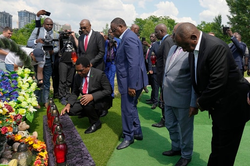 The delegation, which included the presidents of South Africa, Senegal, Zambia and Comoros, first went to Bucha, a Kyiv suburb where bodies of civilians lay scattered in the streets last year after Russian troops abandoned a campaign to seize the capital and withdrew from the area.