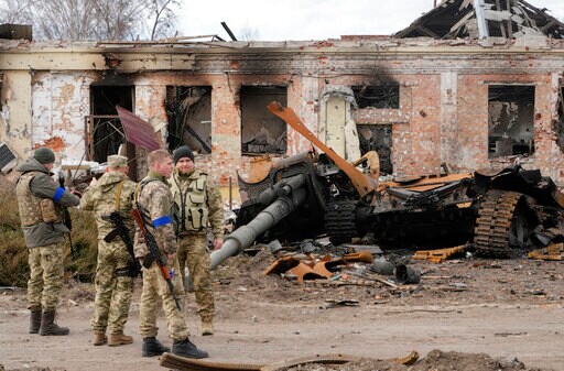 In the city of Makariv, near a strategic highway west of the capital, Associated Press reporters saw the carcass of a Russian rocket launcher, a burned Russian truck, the body of a Russian soldier and a destroyed Ukrainian tank after fighting there a few days ago.