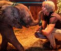Khanyisa has bonded with a sheep named Lammie, who has provided support as a surrogate mother to orphaned rhinos and other elephant calves that come to HERD.