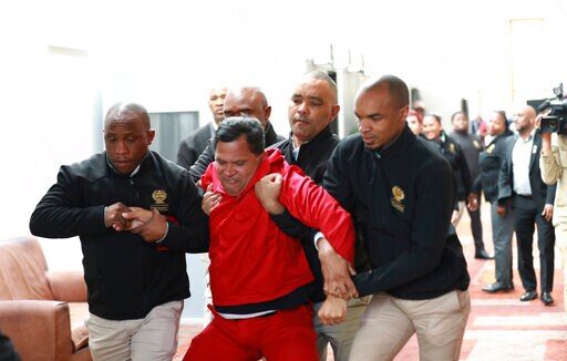At least three members of the leftist opposition party, Economic Freedom Fighters, were physically ejected from the chambers for shouting and disrupting order.