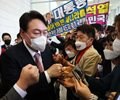 Presidential election candidate Yoon Seok-youl celebrates with his supporters in Seoul, South Korea, Nov. 5, 2021. (Getty)