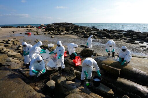 Most of the oil slick was being pushed toward Koh Samet, a popular tourist island that’s just beginning to recover from the coronavirus pandemic slump along with the rest of the country.