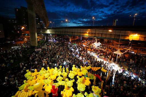 BANGKOK (AP) — Pro-democracy demonstrators in Thailand, undeterred by arrest warrants and the possibility of violent attacks, staged another rally on Friday, poking fun at their critics and warning of the possibility of a military coup.