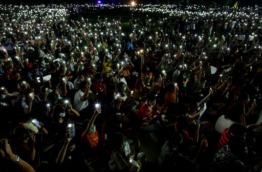 Many at the Thammasat rally wore face masks, a form of protection against the new virus, as they carried placards lambasting the government. A musician who took the stage apologized to the crowd that fellow band members could not accompany him because they were playing at other protest venues.