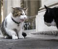Palmerston, who serves as "chief mouser" at Foreign Office headquarters, apparently does not get along with Larry, an orange -and-white tabby who lives at 10 Downing,