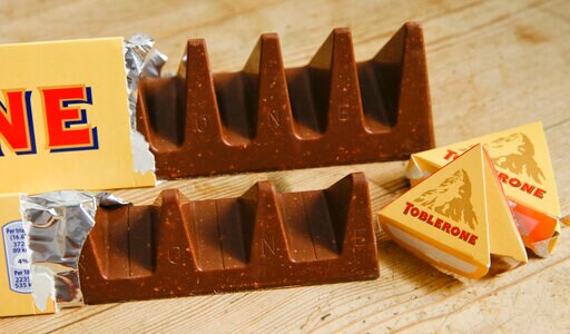 The chocolate bar, made of honey and almond nougat, is distinctive for its triangular “peak” shape that evokes a mountain range and matching triangular packaging — sold in scores of countries and duty-free shops around the globe.