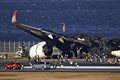 The pilot of the coast guard plane, which was leaving on a mission to deliver relief goods to earthquake survivors in central Japan, evacuated with serious burns, but five crew members were killed. All 379 passengers and crew members of Flight 516 survived after an evacuation that took 18 minutes.