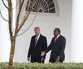 Kenyatta arrived at the White House on a rainy afternoon for his second meeting with Trump. Trump stepped out beneath an awning to greet Kenyatta and escort him to the Oval Office, where they were to discuss trade and other issues.