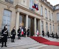 President-elect Donald Trump was welcomed to Paris with full presidential pomp and said he and French President Emmanuel Macron will discuss a world gone "crazy."