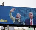 A monkey sits on a billboard welcoming President Donald Trump, who'll visit India next week. The sign is in the city of Ahmedabad. (Ajit Solanki/AP)