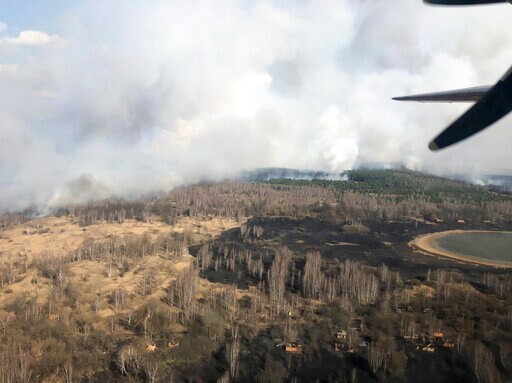 KYIV, Ukraine (AP) — Emergency teams in Ukraine on Monday continued battling a forest fire in the contaminated area around the Chernobyl nuclear power plant that has raised radiation fears.