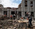 The skeletal insides of one building gutted by the strikes were visible in images distributed by local officials, with municipal workers clearing bricks and rubble strewn after the attack.