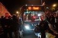 Protesters had been blocking the road and acting violently toward police officers, throwing eggs and other objects at them, a police spokesperson said.
