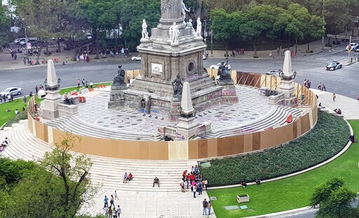 MEXICO CITY (AP) — Workers erected a wooden wall around Mexico City's iconic Angel of Independence monument Saturday after feminists defaced it with graffiti during a raucous and violent protest over a string of alleged rapes by police.