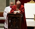 At the start of the most solemn period of the Catholic Church calendar, Francis lay prostrate in front of the altar in St. Peter's Basilica before the chant-filled Good Friday evening service got underway.