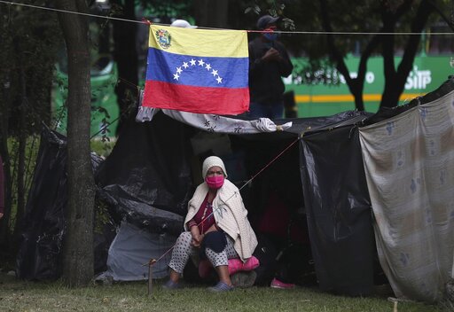 BOGOTA, Colombia (AP) — Out of work, broke and left with few good options during the pandemic, a growing number of Venezuelan migrants in Colombia have set up a makeshift camp on a tree-covered patch along a highway outside the capital of Bogota.