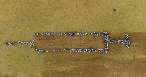 The animals were arranged on Monday into the shape of a roughly 100-meter (330-foot) syringe in a field at Schneverdingen, south of Hamburg.