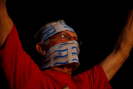 Protesters held dozens of small demonstrations across the country late Tuesday, apparently while complying with requirements to stay close to home. Demonstrators scuffled with police during a larger demonstration in Tel Aviv when they tried to stage a march through the city.