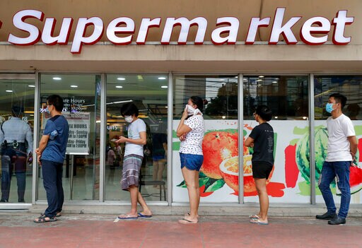 Only one member of a family can leave home to buy food, officials said, but many establishments were closed Tuesday and long lines of people waited in front of supermarkets in metropolitan Manila.