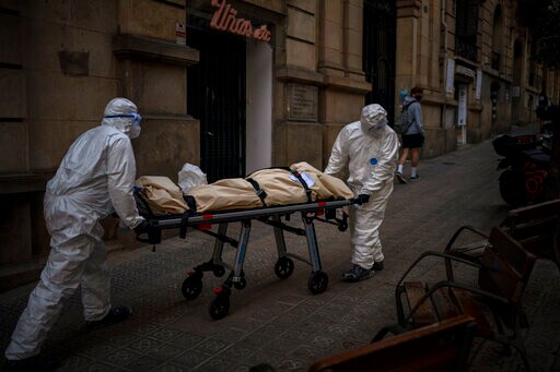 BARCELONA, Spain (AP) — When Marina Gómez and her fellow mortuary worker enter a room at a nursing home to remove the body of a COVID-19 victim, they work methodically and in silence.