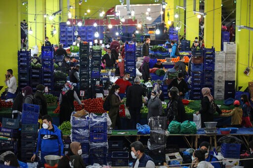 ANKARA, Turkey (AP) — People in Turkey stocked up on groceries, filled markets and left cities for their hometowns or the southern coast Thursday before the country entered its strictest lockdown of the pandemic.