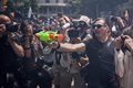 Still, the number of Barcelona protesters carrying water guns was a minority — and in the gun-toting group, many were only shooting in the air or at each other. One dad was toting his baby in a front-pack, water gun in hand.