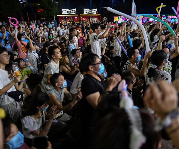 This photo taken on August 4, 2020 shows people participating in a music festival in Wuhan, China. (Hector Retamal/Getty Images)