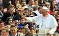 Pope Francis waves during his weekly general audience in St. Peter's Square at the Vatican Wednesday.