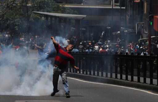 Shops closed their doors Thursday as police continued to fire tear gas, and some armed government supporters hit protesters with sticks. Both groups eventually moved off to a side street, leaving the usually chaotic thoroughfare empty in the early afternoon.